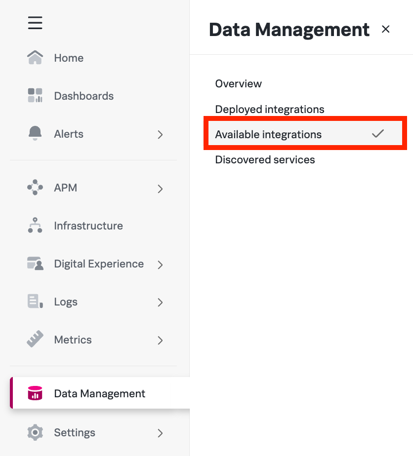 To connect Splunk to your account, click on 'Services and Integrations' in the Hub Config section.